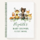 Watercolor Woodland Animals Baby Shower Guest Book Notebook. Baby Animals include Bear, Deer, Moose, Racoon, Bunny Rabbit, Fox and Owl on eucalyptus leaves and forest greenery.