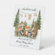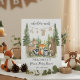 Welcome your guests with this adorable "Adventure Awaits" woodland animal baby shower tabletop sign! Featuring charming watercolor illustrations of a deer, fox, bear, skunk, and raccoons amidst a lush forest, this personalized welcome sign sets the perfect tone for a rustic or wilderness-themed baby celebration. Baby clothes and accessories hang on a line above the sweet animals, adding to the heartwarming design. Customize with the baby's name and event date for a memorable touch. Ideal for baby shower decor, gender reveal parties, nursery accents, or as a thoughtful gift. Available in various sizes and styles to perfectly complement your special day.