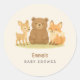 Complete your baby shower décor with these adorable woodland animals baby shower stickers! Perfect for sealing envelopes, decorating favour bags, or adding a sweet touch to cups and gifts, these versatile stickers feature charming illustrations of a bear, deer, and fox — perfectly tying into your Adventure Awaits baby shower theme. Customise them with the honoree’s name to make your celebration extra special.