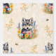 Woodland animals baby wolf cub and greenery on textured cream background.