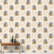 Woodland Animals Baby Wolf Cub Greenery on Cream Wallpaper