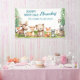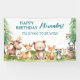 Woodland Animals Birthday Banner! Cute woodland animals theme adorns this birthday banner. Personalise this birthday banner that features illustrations of a possum, doe, bear, fox, racoon, mouse, and owl in forest scene. Fun and playful woodland animals complement this personalised birthday banner.