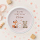 Celebrate your little one’s big day with these woodland animals birthday paper plates in soft blush pink. Adorned with a sweet fox, bunny, and bear, along with playful “Happy Birthday” text, these plates add a charming touch to woodland, forest, or rustic-themed parties. Perfect for serving cake, snacks, and party food while keeping the celebration stylish and coordinated. Designed to match the full Woodland Friends Birthday Party Collection for a complete party set.