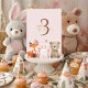 Guide your guests in style with this woodland animals birthday table number sign in blush pink. Featuring an elegant “Three” typography paired with adorable woodland friends — a fox, bunny, and bear — this sign is ideal for birthday tables, dessert bars, or seating arrangements. Perfectly matches the Woodland Friends Birthday Party Collection for a coordinated woodland, rustic, or forest-themed celebration.