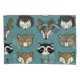 seamless, pattern, animal, woodland, fall, winter, fun, owl, hedgehog, kids, illustration, woods, cute, fox, modern, decor, nature, doodle, face, blue