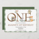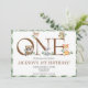 Woodland Animals First Birthday invitation. Personalise your details above. This design has the number one spelled out with woodland animals, mouse, owl, racoon, rabbit & fox hanging around. A fun and whimsical design.