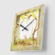 woodland animals forest in a box clock. This beautiful optical illusion of woodland creatures would look fabulous in a country kitchen,hall way or bedroom. The 3d effect of a pine box containing a micro woodland or forest with bunny rabbits, baby deer, birds and badgers is beautfully detailed. Also available in night time version
