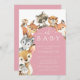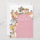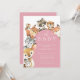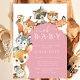 This baby shower invitation features a variety of woodland animals framing a modern arch in pink, making it perfect for a baby girl shower. The deer, bunny, fox, beaver, wolf, owl, and racoon add a touch of whimsy and fun, while the elegant arch design keeps the invitation looking polished and sophisticated.