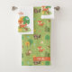 A cute bath towel set for kids! It features various cute woodland creatures such as bird, fox, deer, racoon, hedgehog, bunny, squirrel and woodland elements like trees and flowers. Each item can be personalised with the name of the child. Make showering fun for kids!