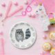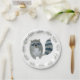 These paper plates feature an endearing design of a grey and navy blue racoon, exuding charm and playfulness, set against a backdrop of a white canvas. The racoon stands gracefully, with its cute masked face and fluffy tail, instantly capturing the hearts of guests.