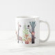 Watercolor woodland animals, fox, racoon, birds, moose, wolf, trees, greenery, coffee mugs.