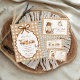 A warm and whimsical woodland aesthetic with soft autumn tones. Features hand-painted forest animals, cosy beige gingham background, falling leaves, butterflies, and a scalloped ribbon frame. Gentle, rustic, and nature-inspired — perfect for celebrating a mama-to-be with woodland charm and seasonal cosiness.