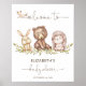 The Woodland Baby Shower Greenery Welcome Poster sounds like a lovely piece of art, with its charming depiction of adorable animal friends such as bear, bunnie, hedgehog, and foxe. The fox walking through the letters adds a playful and whimsical touch to the design.