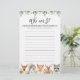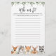Woodland animals themed baby shower who am I game card features a watercolor nursery illustration and watercolor greenery eucalyptus garland and elegant handwritten style font.