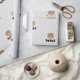 Sweet wrapping paper boho design. Adorable woodland bear with footprints for the background. For boys or girls. All occasion gift wrap.