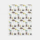 A fleece blanket featuring a pattern with illustrations of a bear, mountains, mushrooms, and arrows. Personalise the name.