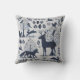 Woodland Blue and White Animal Fox Bird Silhouette Cushion
