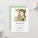 Celebrate your little one on the way with this adorable woodland bunny baby shower design! Featuring a sweet watercolor bunny wearing a cozy green jacket, pushing a wheelbarrow filled with fluffy chicks and fresh carrots under a leafy tree, this charming illustration creates the perfect storybook feel. Ideal for rustic, woodland, spring, or gender-neutral baby showers, this design brings warmth and whimsy to your special celebration. Customize with your event details to create a memorable invitation your guests will love.