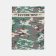 Camouflage pattern fleece blanket in green and brown with editable text field. Customise with up to 18 letters, numerals or symbols.