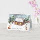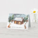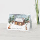 This design depicts a watercolor illustration of winter woodland scene - the fir trees, log-cabin and woodland animals - fox and hare. You can adjust text according to your requirement