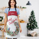 You'll enjoy baking up a batches of holiday cookies with this lovely Christmas apron! It features a woodland Christmas theme with a beautiful wreath with candy canes, pine cones, eucalyptus, and birds wishing your family and friends a Merry Christmas. Personalise this one with your name, prior to placing into your shopping cart.