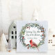 Woodland Christmas Wreath, Cardinal, Snowflakes Holiday Card