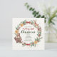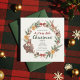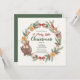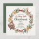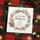 Whimsical Christmas invitation featuring adorable woodland animals including a deer, bear, and penguin arranged in a festive wreath with pine branches, holly, dried oranges, and red berries. Perfect for family-friendly holiday parties and gatherings that celebrate nature's charm with a touch of rustic elegance and playful holiday spirit.