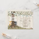 A baby shower invitation featuring an illustration of a fox, an owl, and a racoon standing around a tree wrapped in banner that says, "It's A Boy!" Tree features exposed roots, green leaves, and mushrooms. Blue and white bunting above customisable text.