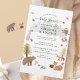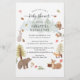 Simply create a cute woodland animals baby shower invitation with this template featuring an owl, fox, bear, squirrel, deer, mushrooms and more for your cottage core theme shower for the mum-to-be. TIP: Check out the other items in this collection with the same design for a complete and easy shopping experience for your baby shower party.