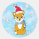 Woodland Creatures Christmas Fox with Santa hat Classic Round Sticker