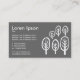 A modern business card with an attractive, original woodland motif. Suitable for a variety of businesses. Ready to be customised. The company details are on the front with name and contact details on the reverse side, on a mid grey background. However the background colours are customisable. NB The tree graphic on the back is in white.