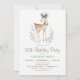 Woodland Deer birthday party invitation. Invite features woodland girl tan brown fawn with blue flowers.