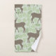 Woodland Deer Foliage Green Brown Pattern Bath Towel Set
