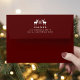 Festive holiday garnet red envelopes coordinate beautifully with our modern rustic Woodland Deer holiday card collection. Design features your return address on the back flap in white lettering with a pair of buck deer silhouette illustrations joined by a single Nordic style snowflake. Lined in a subtle pattern of black and white dotted diamonds.