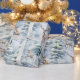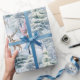 A Blue Pastel Wrapping Paper Of Woodland Deer In The Snow Covered Trees