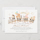 Simply adorable woodland animals train boys baby shower design with a classy damask pattern on the back.