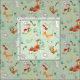 4 1/2 inch repeat pattern. This enchanted forest is filled with magical woodland creatures. Sitting on top of a delightful European red fairy mushroom is a sweet and wise old owl. Swirly fern fronds are tossed with red and yellow wildflowers among the red fox, deer fawn, bunny rabbits and woodchuck for a delightful woodsy non-directional pattern. Perfect to use for baby crib bumper pads, pillows, crib quilts or curtains in your newborn baby boy's nursery. Available in a variety of background colours or create your own using the custom background colour tool. All of the art is hand watercolored by Audrey Jeanne Roberts and there are a wide range of fabric patterns and products to coordinate including baby shower invitations and nursery decor items. COLORS: soft pastel mint green, red, yellow and green