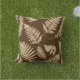 Outdoor pillow in woodland fern silhouette pattern pillow adapted from vintage botanical illustrations, digitally rendered and coloured, in dark chocolate brown and light beige