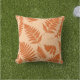 Outdoor pillow in woodland fern silhouette pattern pillow adapted from vintage botanical illustrations, digitally rendered and coloured, in deep mandarin orange / tangerine on pastel orange