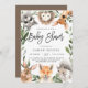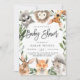 Invite your guest with our elegant and modern woodland forest animals baby shower invitation features greenery eucalyptus garland and watercolor forest animals. Personalise with your baby shower details in simple layout and elegant handwritten style font.
