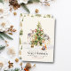 This cute "from our family to yours" Christmas holiday card features woodland forest animals, such as a deer, rabbits/bunnies, fox, racoon, and squirrel, around a Christmas tree in watercolor. The reverse side features a white background with tree patterns. Personalise it for your needs. You can find matching products at my store.