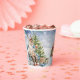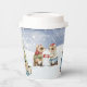 This adorable cup features a watercolored woodland scene with forest animals enjoying winter drinks in the snow.