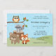 Adorable woodland forest baby shower invitation featuring an owl, racoon, fox and bear... a lovely invitation for a boy or girl.