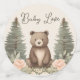 This adorable woodland forest design features a cute brown bear surrounded by blush florals and trees.