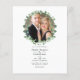 Watercolor greenery wreath photo wedding photo invitation card designed to be quickly and easily customised to your event specifics. Ideal for any given theme or garden wedding. Please note that this budget invitation is on flyer paper and it is very thin. Envelopes are not included. For thicker invitations with envelopes included and matching products on the same theme please see the collection below.