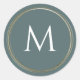 This set of 20 small 1.5" round monogram envelope seals feature a seafoam green background surrounded by a faux gold border with a white monogram initial.