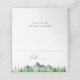 Rustic watercolor woodland forest trees and mountain landscape, wedding place cards.