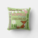 Woodland fox and daisy baby birth statistics pillow with newborn baby's name, birth date, height, weight and time of birth.