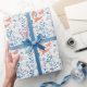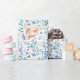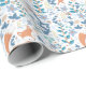 Charming woodland fox and hedgehog pattern surrounded by delicate winter florals and soft foliage in shades of blue, taupe, and cream. The repeating design has a cosy hand-drawn look inspired by peaceful forest scenes. Ideal for winter birthdays, baby showers, or rustic holiday gifts.