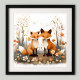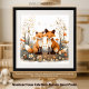 Woodland scene poster with 2 cute foxes. Earth tones and soft colours of grey, orange, brown. Perfect for kids rooms or baby nursery.